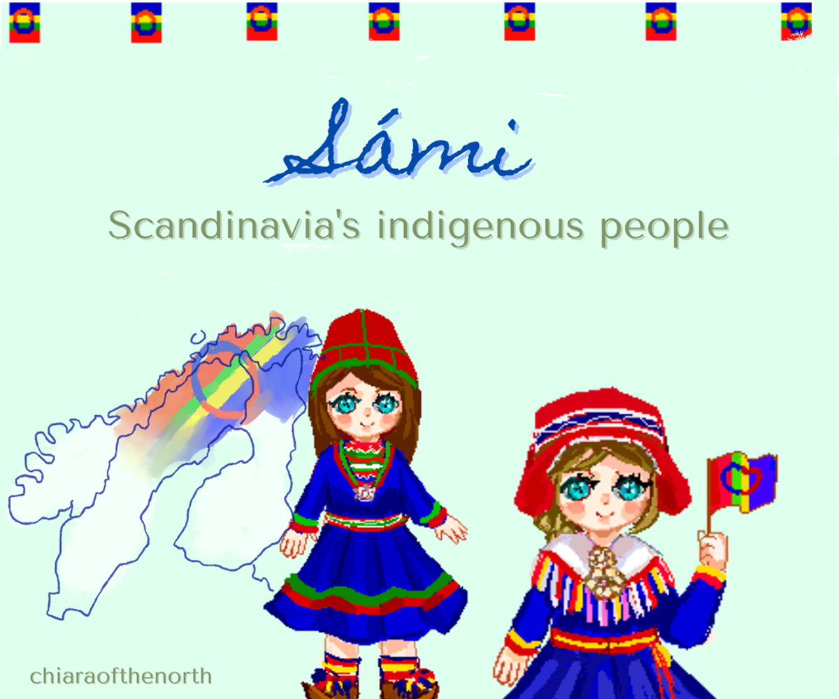 Sami people mantain a strong cultural identity while being citizens of their countries, from languages – which are related to Finnish – to traditional clothing and a Sami flag.